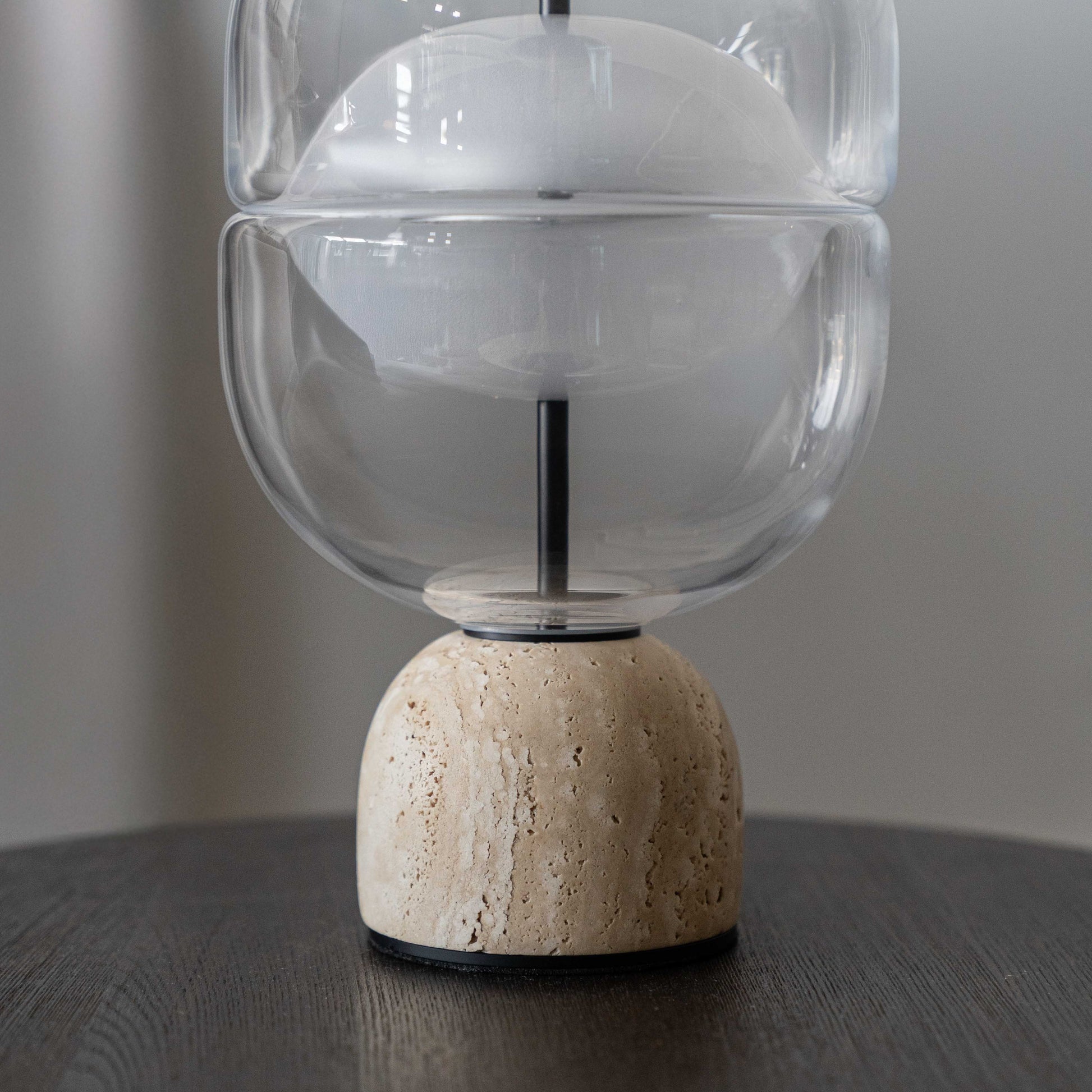 Alara Travertine Marble Modern Table Lamp features a luxurious marble base and sleek design, perfect as a modern table lamp for spaces in Dubai.