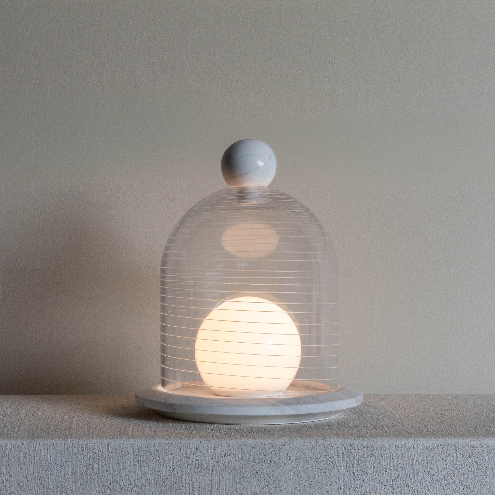 The Celia Table Lamp features a marble base, glass shade, and onyx detailing, creating a refined lighting piece that elevates modern interiors.