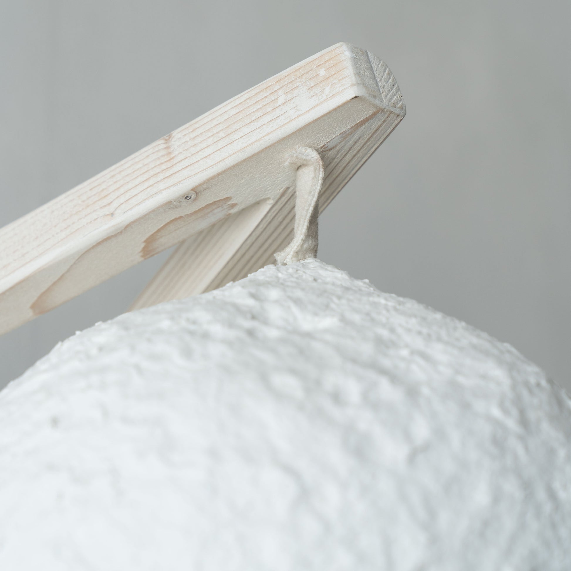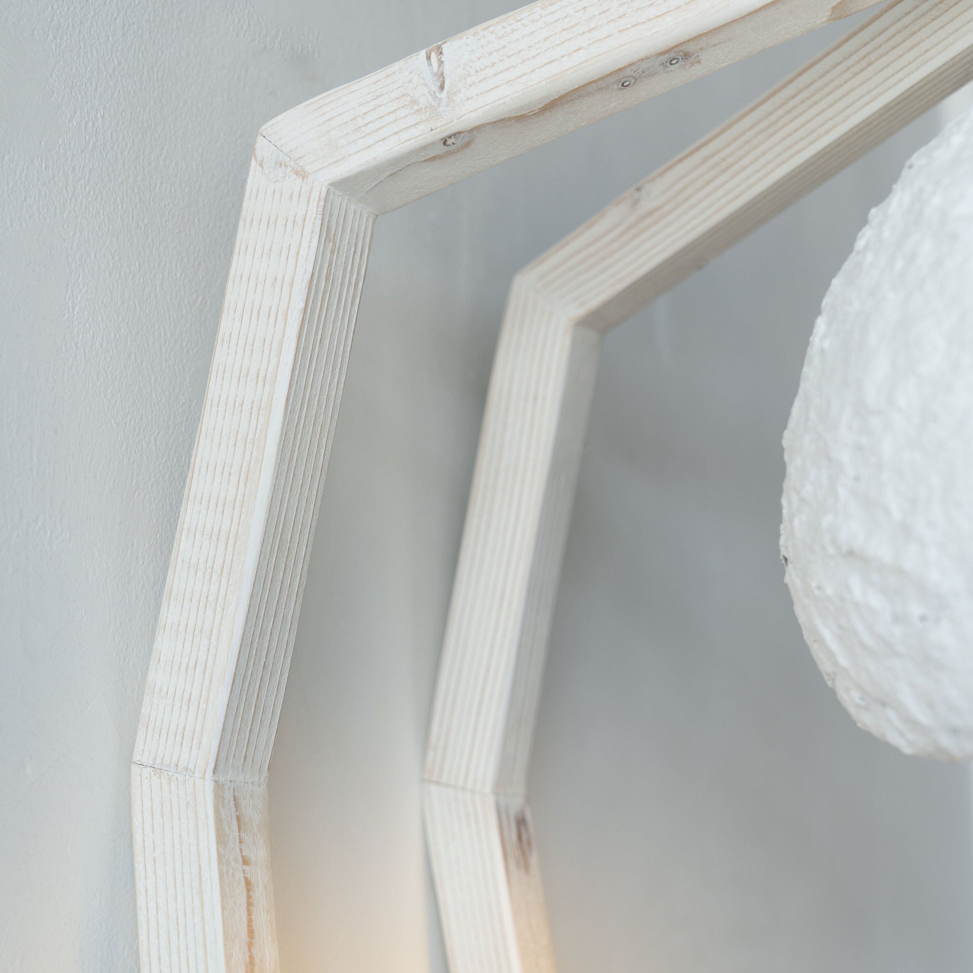 This ladder floor lamp features a natural wooden frame and round cement shade—blending structure and softness for modern interiors in Dubai homes.