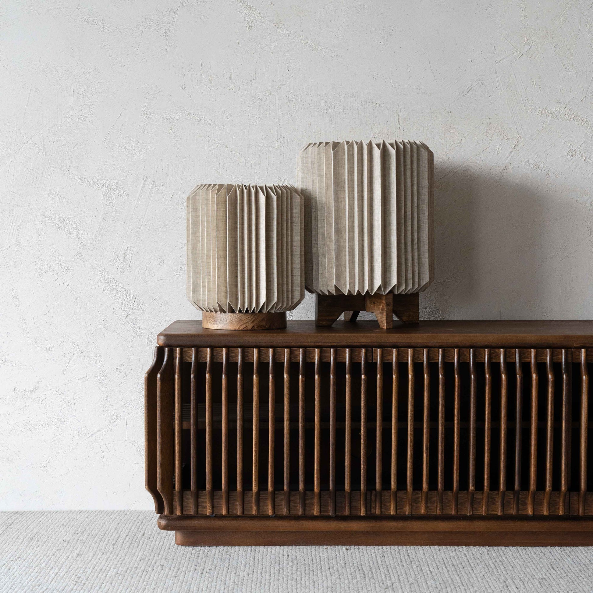 Origami Wood Base Modern Table Lamp combines sculptural style and natural wood, perfect for adding character to Dubai interiors.