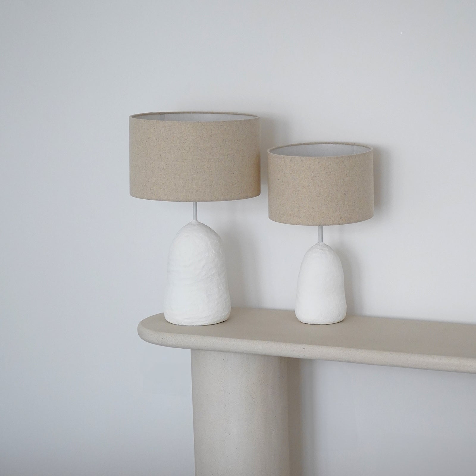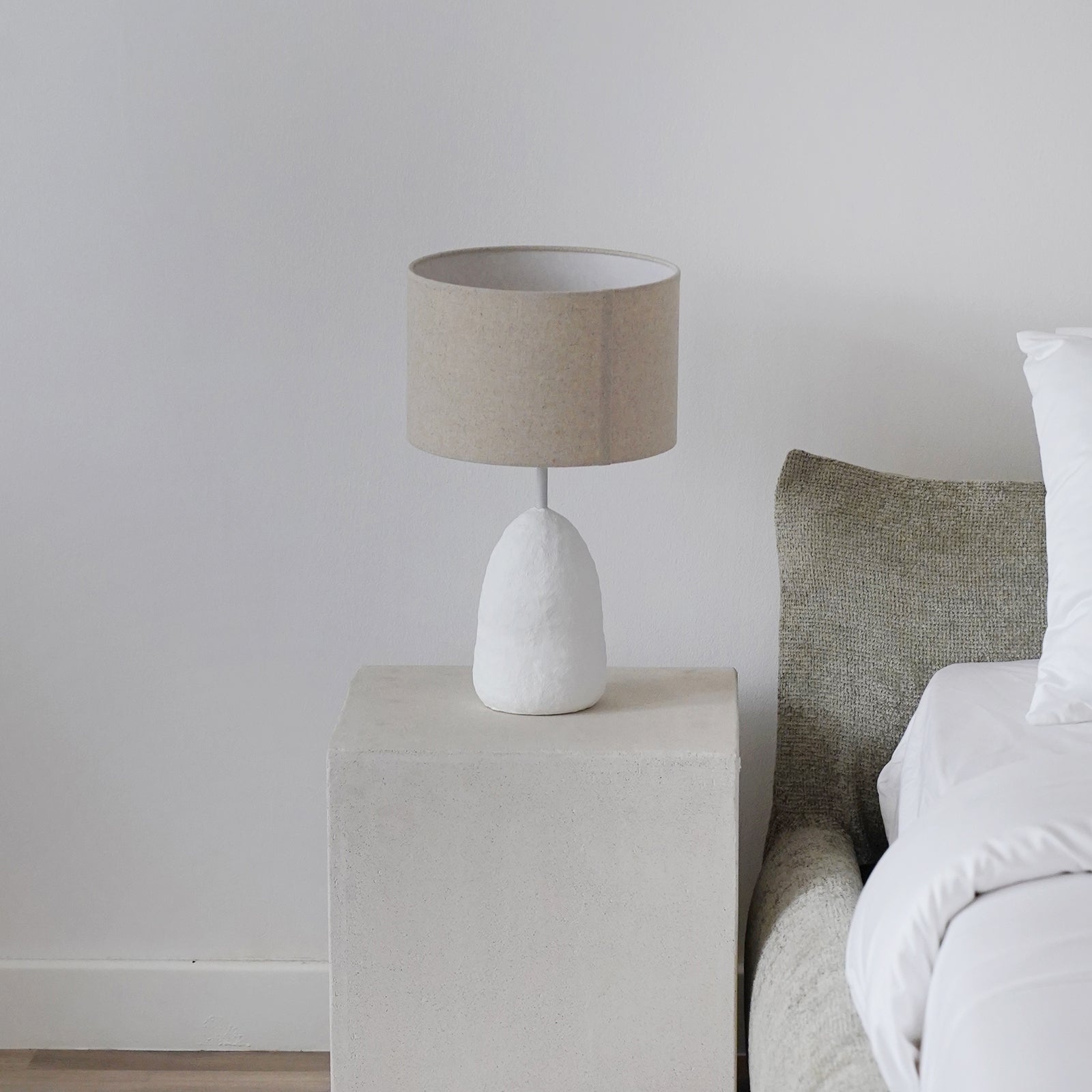Rigel Paper Mache White Table Lamp brings handmade artistry and modern style—perfect for adding a soft glow to Dubai interiors.